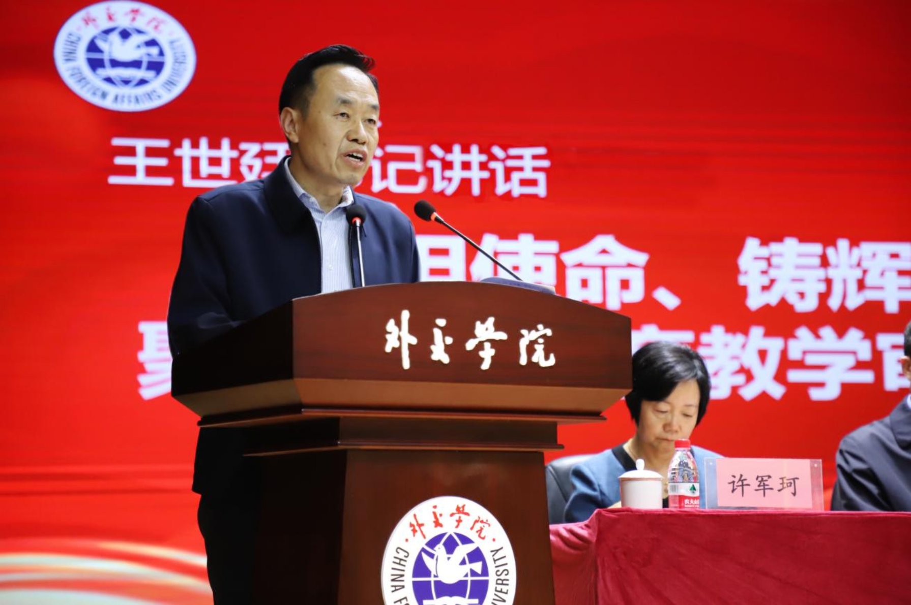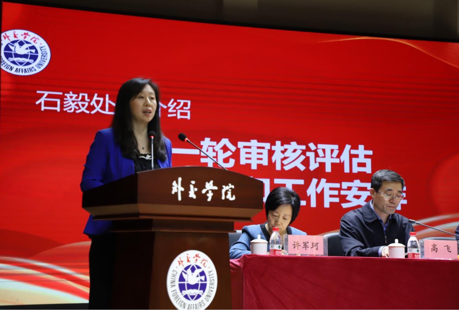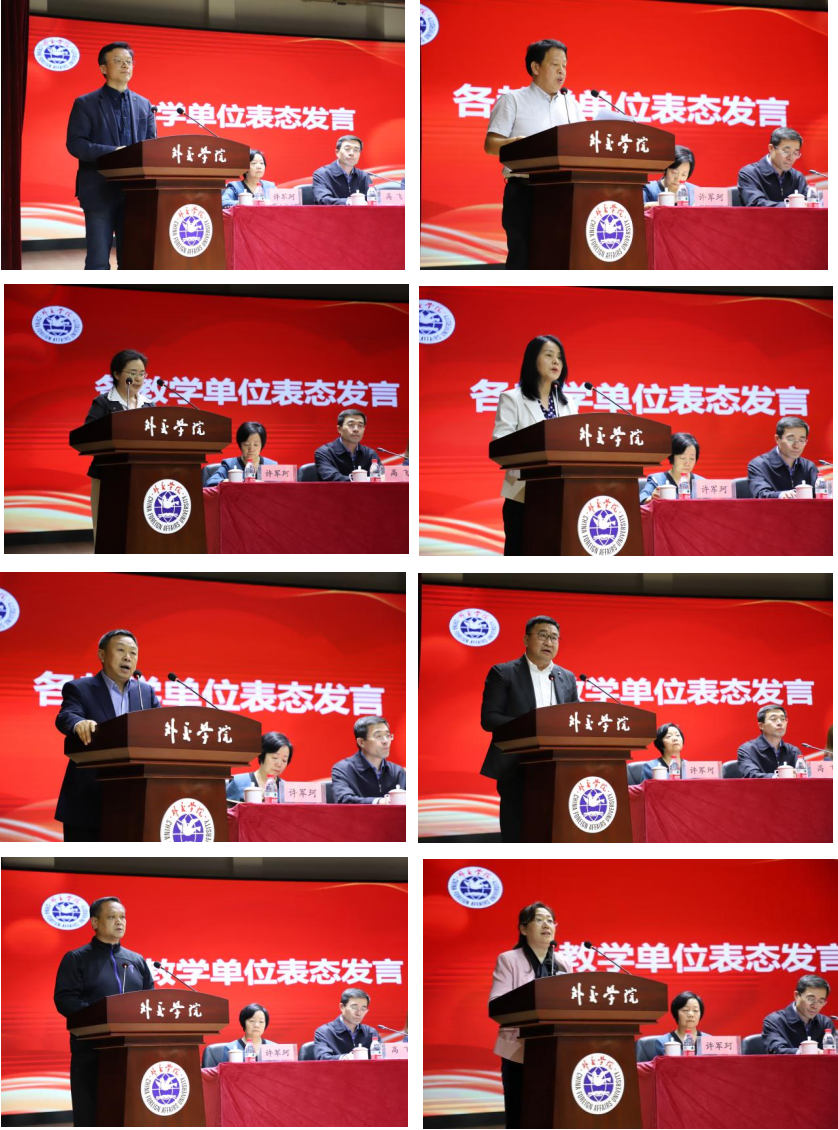 会上,外交学系、英语系、外语系、国际法系、国际经济学院、国际关系研究所、基础部、马克思主义学院等八个教学单位负责人依次作表态发言,承诺将严格按照学院的统一工作部署,以饱满的热情和严谨的态度迎接审核评估。